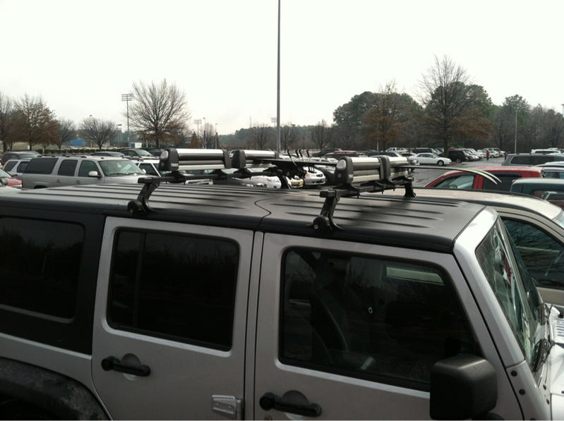 it could be a Thule but i saw a similar one up at MT. Sunape and it was a different name i have never heard of, I do know for a fact that Surco roof racks makes a system that requires no drilling, it's an adapter that mounts between the rear hardtop and tub rails.