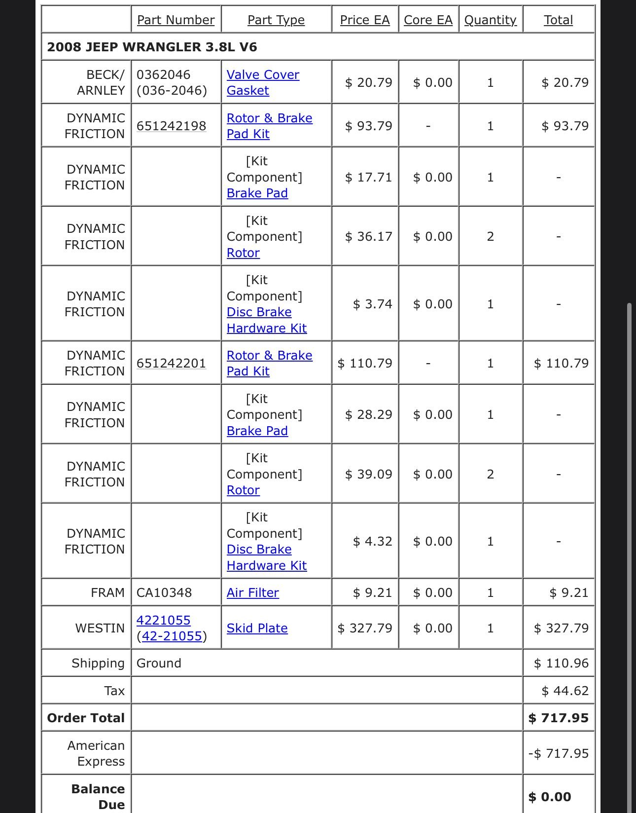 First order in the books. Going to change the oil, oil filter, air filter, degrease the engine, and change the valve cover gaskets since there is a small leak. I just noticed the soft top isn’t put together well so I’m going to buy a used hard top and put a hard top hoist in my pole barn. I have someone driving 7 hours to come look at my Camaro. If I can sell that this weekend, I’ll have the fund to buy the lift and Dana 44 asap. I bought this skid plate because the gas tank skid plate on there now is completely rusted. Thankfully that’s the only rust there is.