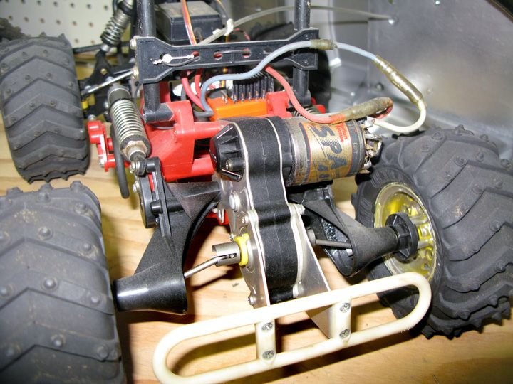 Back then there was only one monster truck kit and it was from Tamaya. But being a Kyosho racer I took an old turbo optima chassis and pimped it out. Motor was courtesy of Makita from an industrial screw gun and provided plenty of torque. Initially used a Futaba ESC but these weren't very reliable so swapped in a Novak 4.