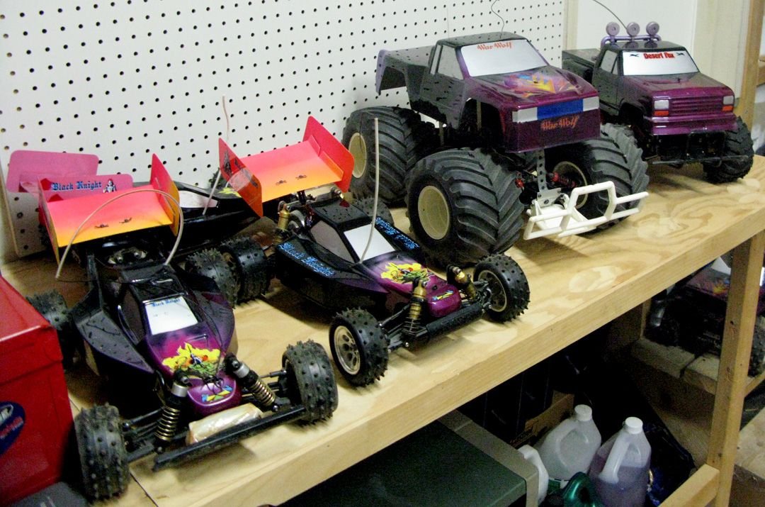 Pretty much every piece of the stock Blackfoot chassis broke when you raced these trucks. They were ok for putting around the driveway but in competition they broke. So everything pretty much got replaced, the dog bones on stock Blackfoots were cheap plastic and rounded off if you ran any sort of power. So the only upgrade was metal, also the diff was also replaced with a metal part. Shocks, Kyosho because I had a large supply of those parts. Heavy hard plastic body replaced by a light lexan body. Cheap can motor upgraded to a BB Kyosho motor. Cheap speed controller swapped out for a Novak. And of course all the cheap plastic bearings were replaced with ball bearings. Basically four times the cost of the original kit, add in spare parts and well you are talking about $1000 plus.