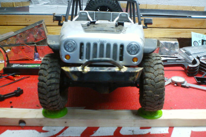 Moving the battery from the rear to just behind the front shock towers sitting sideways.Also removing stock spare tire from bumper to rear of jeep between the roll bar.Moved esc to rear.