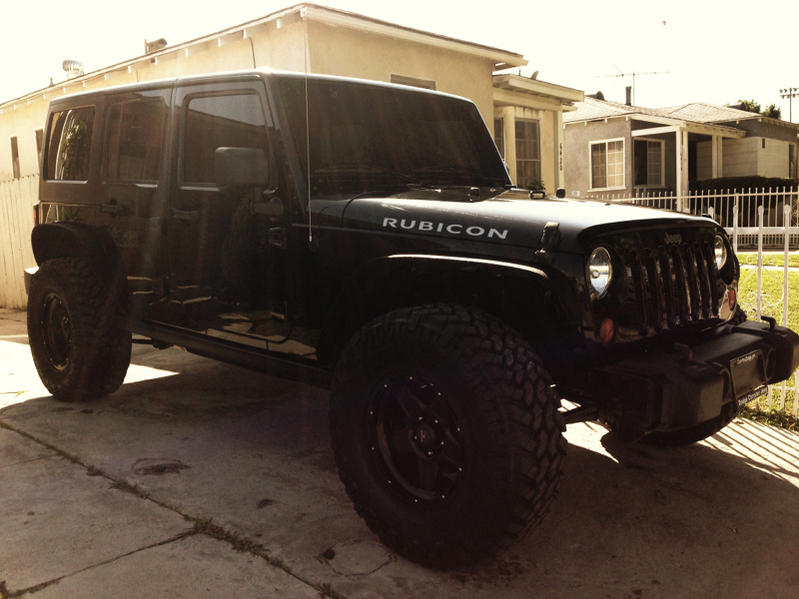 Formerly under username 69nova468. Put my new wheels on with the 35s, plasti diped the key holes black and the jeep emblem in camo green. Evo enforcer kit will go on next week oh and I also took off the wrangler unlimited decals