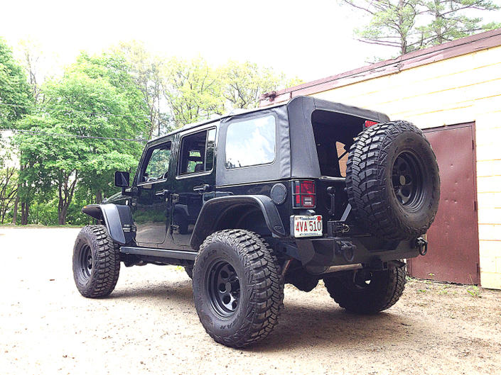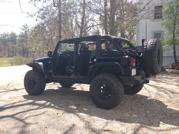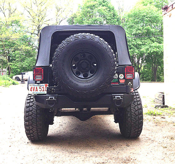 Cut, welded, grinded and painted my full width Rugged Ridge XHD rear into a baddass stubby. Looks much better especially with my flat fenders.