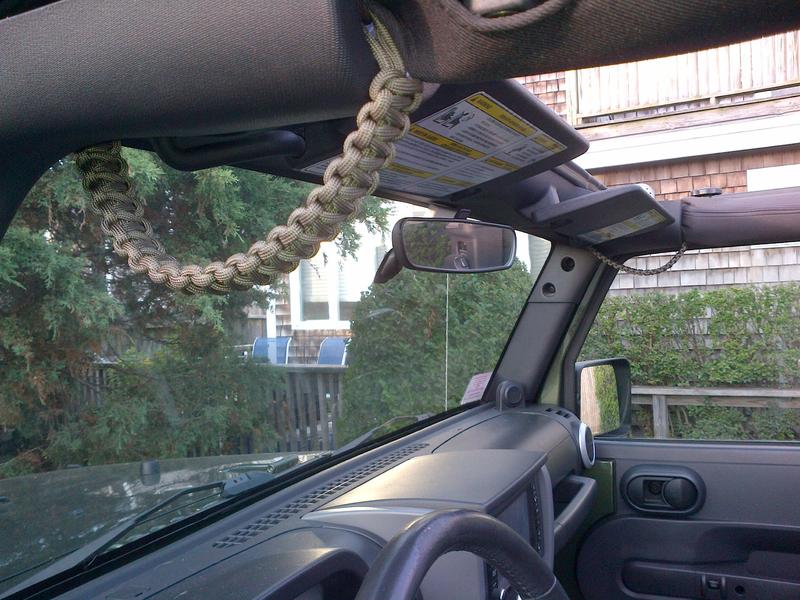 Felt like doing some free mods today. Made a couple 550 cord grab handles, drilled drain holes in side view mirrors, flipped rearview mirror, and removed hood spring to stop it from flapping at highway speeds. First time making the grab handles, it's surprisingly quick and easy.