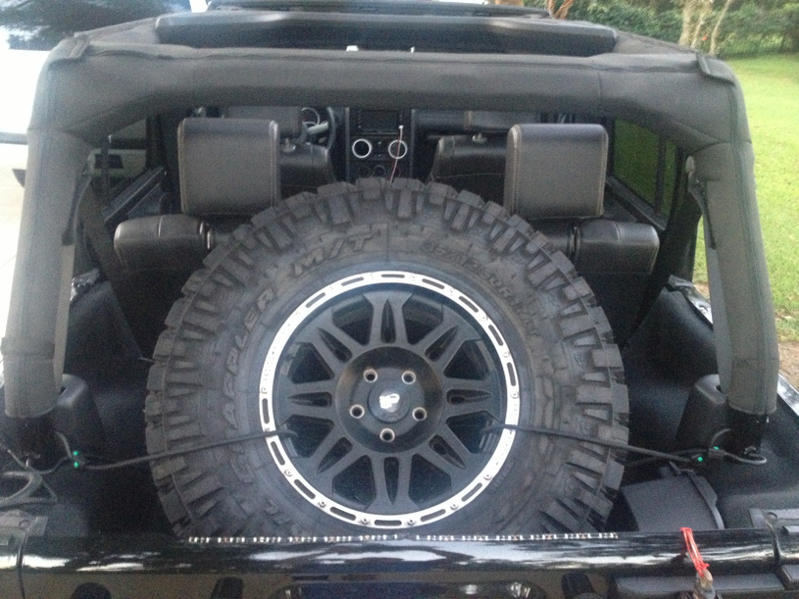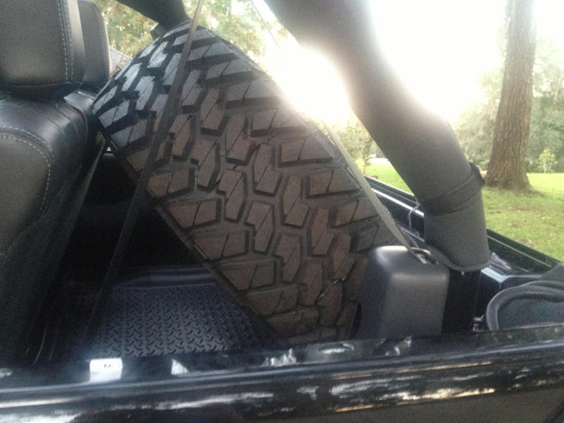 It's literally one of the easiest mods to do. Just take your tire(must me around 35 inches for it to work right) and simply lean it against your back row of seats, and tie it down with bungies or rope. Simple as that