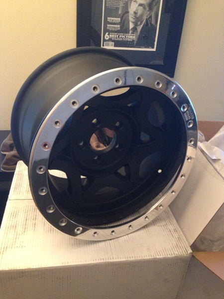 Very nice mike, can't wait to see all the new stuff on your jeep...... Those look bad@$$..... your gonna have fun mounting tires, get an electric drill to seat down the bolts...call me I'll give you quick tips to reduce mounting time and arm fatigue.....lol finger cramps, I got me some FINGER CRAMPS......