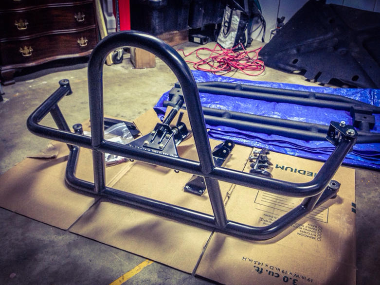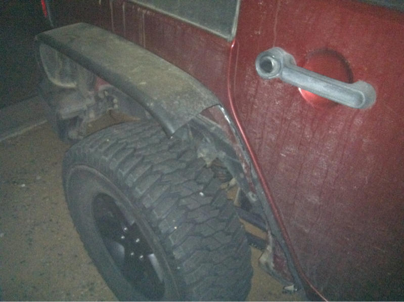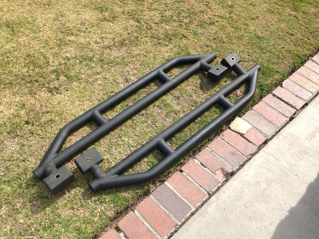 Got some used/new parts yesterday with a little $$ and traded some stock parts I had lying around for a genright tire carrier already powdercoated (never had a tire mounted) and a set of powdercoated poison spyder rocker knockers (never installed)... plus found a set of 2-door ACE sliders for a buddy!