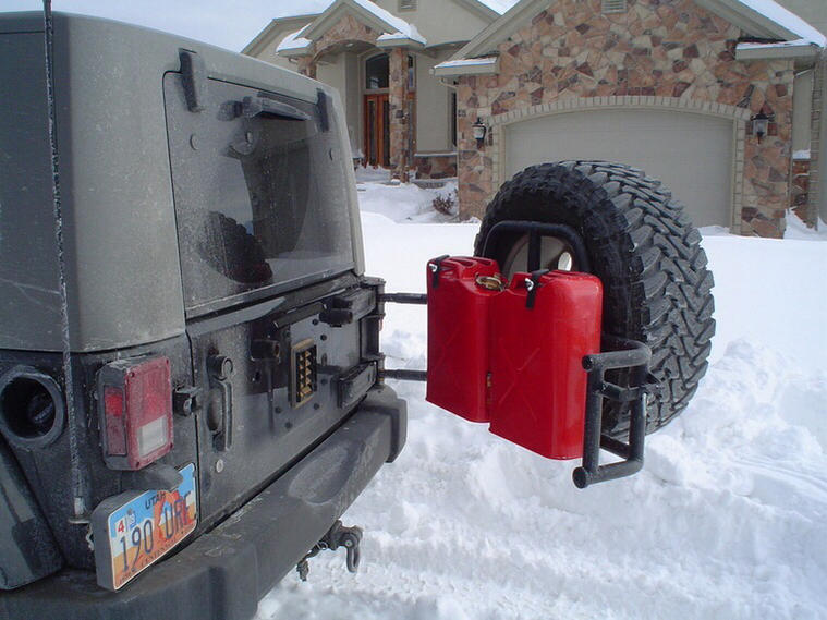 Genright makes that carrier with the jerry cans in mind. They sit inside with the tire. I prefer jerry cans over Rotopax. Although, I will have rotopax inside the jeep for water. I need to look at their site and make sure I can fit a 37" tire in there. Im jumping to F/R Dana 44's and jumping up to 37's soon.