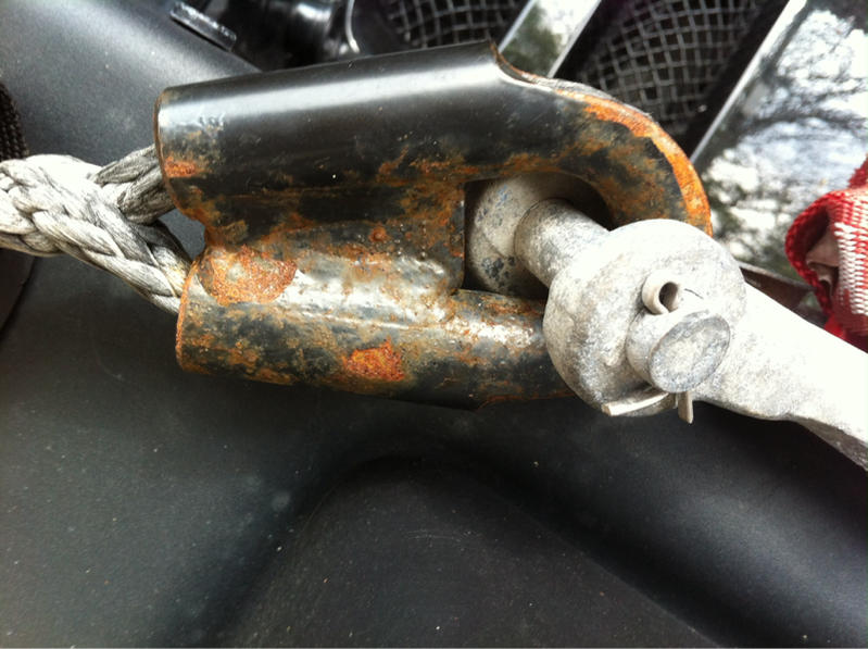 Noticed some rust after 1 year on the Warn rope Eye and Warn says it is not covered even though all the paint was noticeably bubbling from a crappy coat. Decided to take it off sand it down and Tremclad it. Figured while i had the hook off i might as well replace it with the Prolink 55 Thimble. Much cleaner look and top notch quality and glad i replaces the hook.