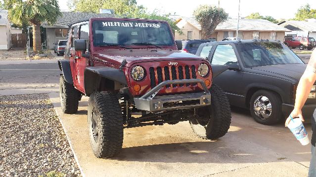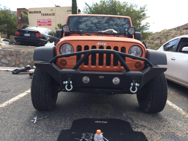 New 4:88's, Eaton E-Locker for the rear, new Truck-Lites, and a used Ace Pro Series front bumper. Jason at Absolute Off Road did the work and did a really good job. 4:88's are perfect. Still breaking them in. I ordered a Bestop NX and some badass LED bars from Impulse Lights. The top is back ordered along with light bars. Must be a busy season. I was amazed at how small the brake pads are for the JK.