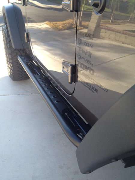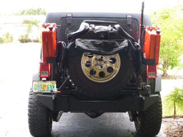 Added swing away tire carrier with jerry can carrier and hi-lift bracket. Also added the Bestop spare tire organizer...very nicely constructed.