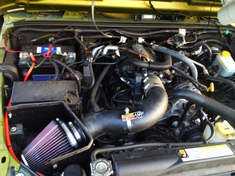 Installed a K&N intake (thanks IZZNICE!). Plasti-dipped my Trail Rated Badge and the center of my wheels. Installed a 3 piece Mopar tinted window kit for my soft top.