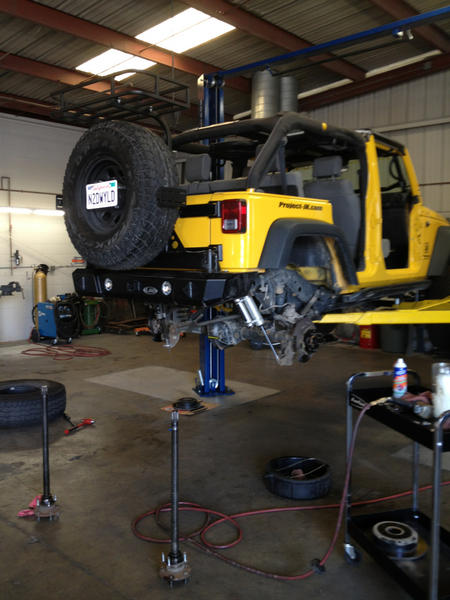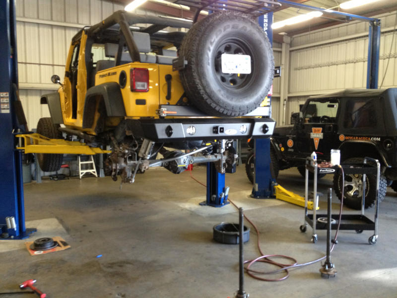 Installed superior rear axle shafts. I found a place in Escondido that allows me to work on my jeep using their tools, a lift and a mechanic if I get stuck. It's called DIY Garage.