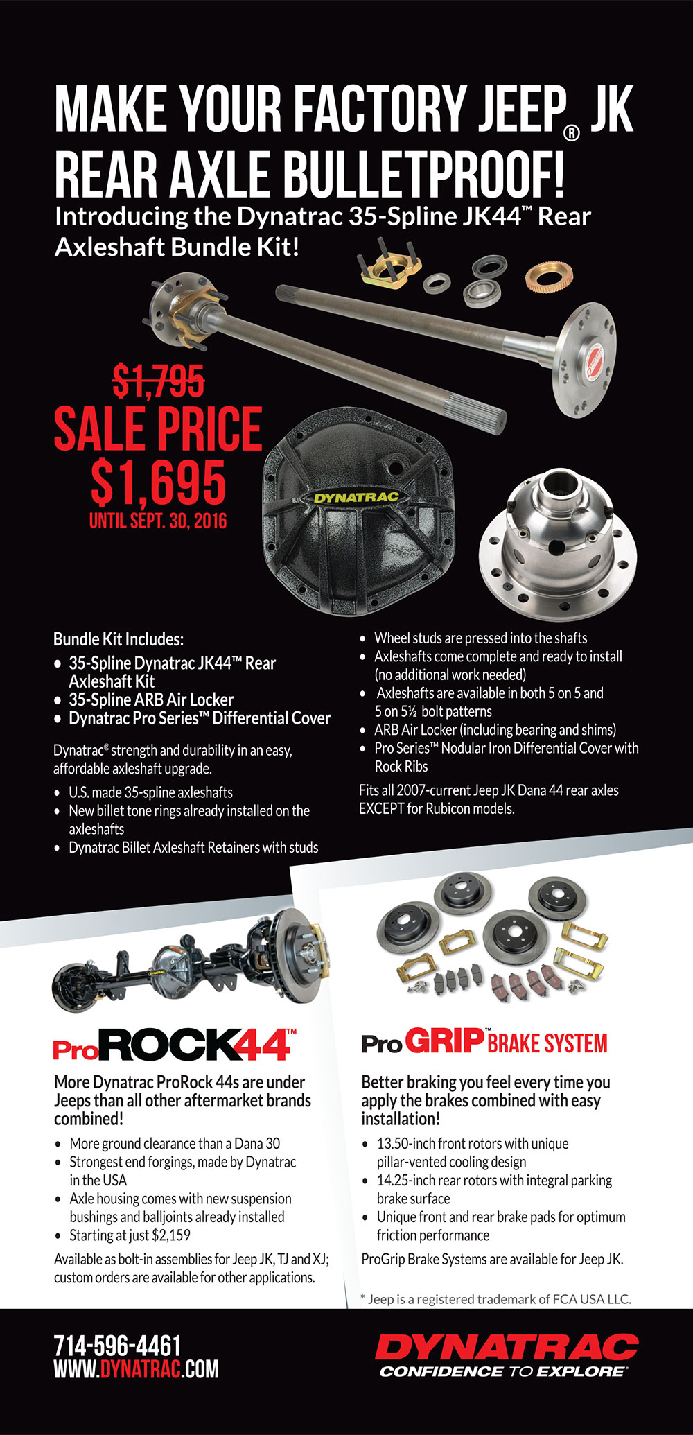 We know everyone’s excited about our new JK44 Axleshaft Bundle Kit, so we’re going to make it even tougher to resist buying one! From now through September 30th, we’re having a special sale and knocking $100 off the price of the new kit. That’s right, now you can purchase a JK44 Axleshaft Bundle Kit for only $1695. No special code needed, and you get the deal at Dynatrac.com or by calling 714-421-4313… https://www.dynatrac.com/axleshaft-k...ndle-kits.html