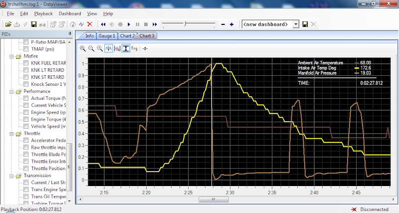 But your numbers should be lower, and your IAT (my yellow line) would be less pointy (because vehicle speed increases intercooler effect)