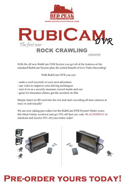 Red Peak Off Road is now taking pre-orders for it's new RubiCam System with DVR! Now you can record up to all 4 trail cameras at once or individually!