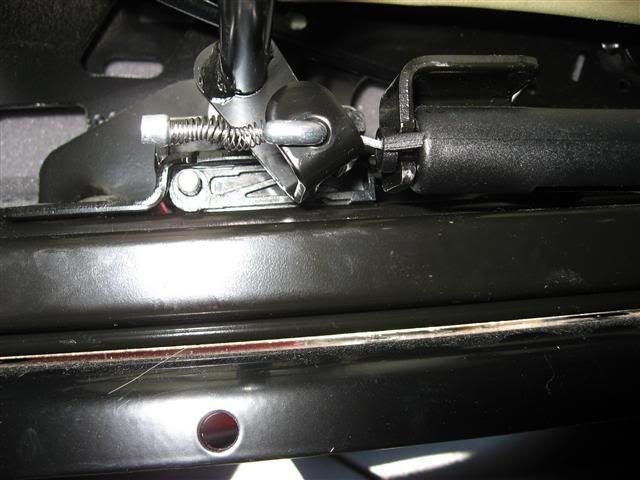Look at the photo above and notice the rod with a spring. Just below the left side of it it is the end of the pin I mentioned.