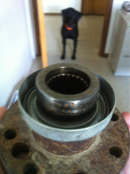 My new output shaft did not have the dust sheild, tech said i could buy an oem output yoke and take the dust sheild off and then spot weld it in place around the new one.