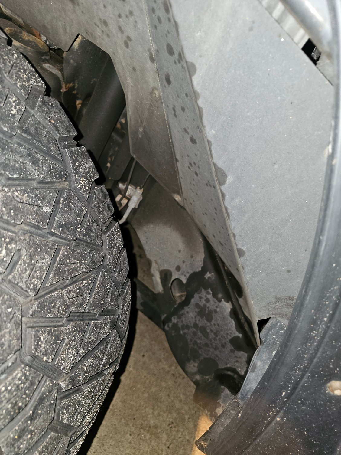 I have a leak somewhere on the drivers side front that I have been chasing for a few months that I cant figure out. It only seems to happen while the jeep is in motion. It is almost dry to the touch every time I check it and has no scent. I have cleaned the area off to make sure it wasnt just something I ran over but the stain keeps showing back up in various areas as shown. Because it has no scent I was thinking it might be the trans cooler line which runs above the frame rail but I can't really get eyes up there to see. I have been keeping a close eye on all my fluids but everything looks fine. Anyone have any ideas? Thanks