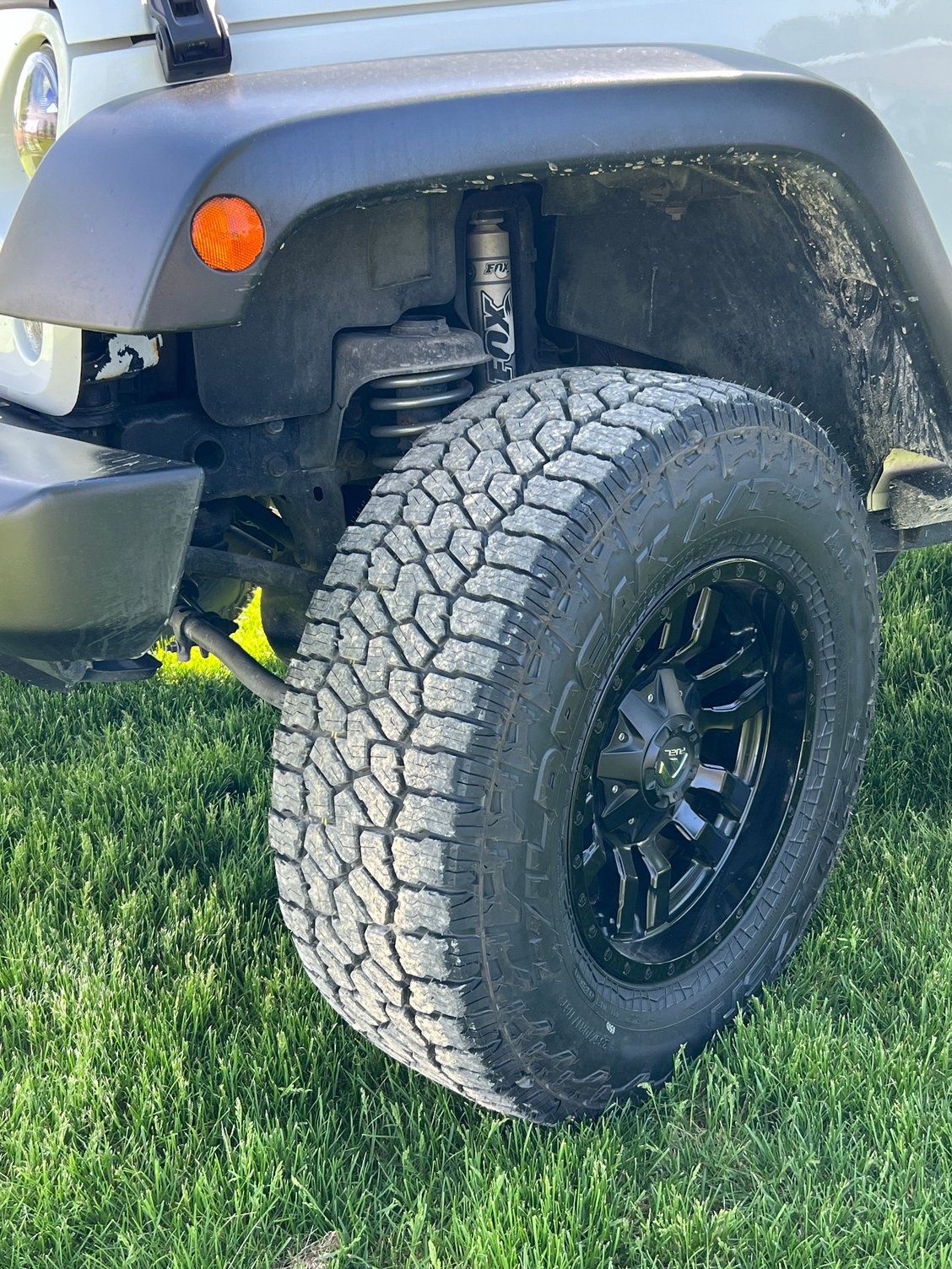 Yup, I agree. One thing to consider is that replacing springs is always opening a can of worms cuz the actual lift netted will be a moving target that varies from jeep to jeep. Unless you're looking to maximize articulation for technical off roading, doing some sort of spacer on top of the factory springs is going to be a more simple, and cheaper, route for you. Even when replacing a full suspension you shouldn't lift more than needed. Higher does not equate to "better" and the higher you go the more issues you introduce that need to be addressed. For what you describe, I think 2" boost max really. the 1.5" leveling kit is a good suggestion. It will accommodate your desired tire/look. Any time you lift a jeep you're going to see subsequent effects, but with that little bit of boost the side effects are marginal (lower caster, horizontal axle shifts under the body, steering angles). I am not a fan of using things like shock bracket or sway bar link "extensions", so if you do lift you might factory in new shocks at some point, and new adjustable sway bar links. The current shocks are likely no big deal for pavement purposes, but at some point you want a shock that is properly sized for lift and current travel.