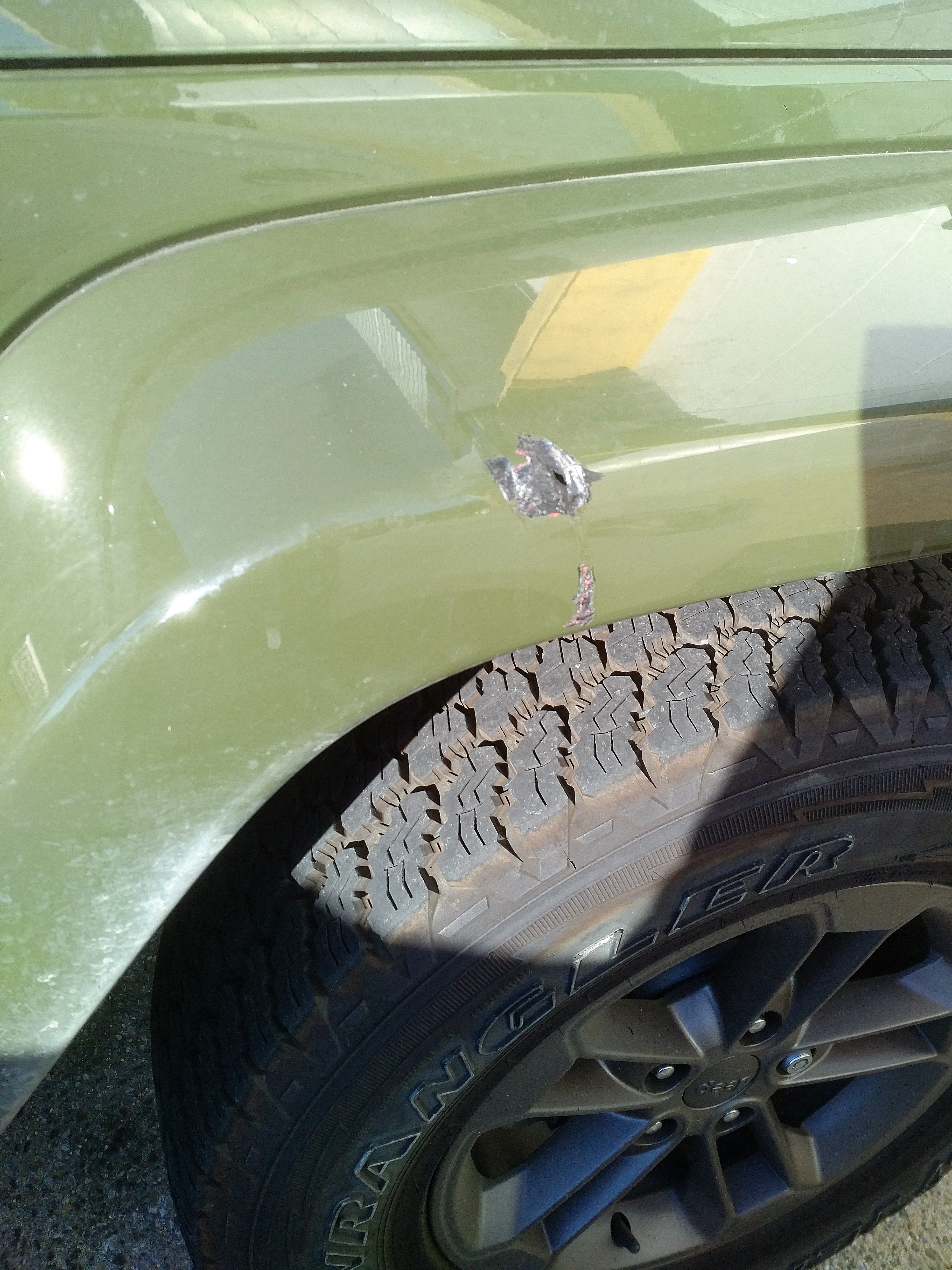 I damaged my Sahara fender flare (front right). It's in pretty bad shape following a jumper cable melting against it and essentially melted a hole through it (see attached pic; and, yes, they were cheap cables and I feel pretty stupid about it). Of course I have painted flares, and I have been unable to find a website that can custom paint an OEM replacement for me (Sarge Green - PGG). Honestly, I've thought about taking the opportunity to just go and replace them all with something else, but I really like the look of the matching paint on the flares to the body of the Jeep.
