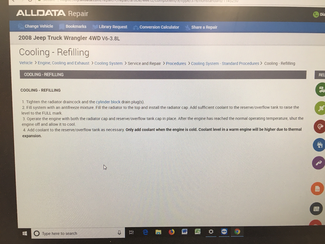 update the job is complete. It took about 4 hours of taking my time. The AC connection was a real pain to line back up. I have the aftermarket Mopar Trans cooler (2008) and getting that plus the AC plus the radiator lined up by myself was terrible. I would highly recommend a new mopar radiator. It comes with the rubber bushings and cap. I also got the mopar hoses and they come with the constant pressure hose clamps. Mixing of the coolant and distilled water was easy and the Airlift is EPIC!. No bubbles that I can tell in my radiator. I never even had to burp it. Just needed to add a little more in the overfill tank the next day. Check this one off the list and hopefully with the purchase of the Mopar over the cheaper models I will get another 10 years of use.