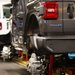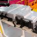 These photos showcase the assembly process of installing the battery packs into the Jeep Wrangler frame. The batteries are mounted behind the rear seats in the floor pan. As pictured above, the assembly technician is using an ergo arm to lower the 280-pound battery pack into position.