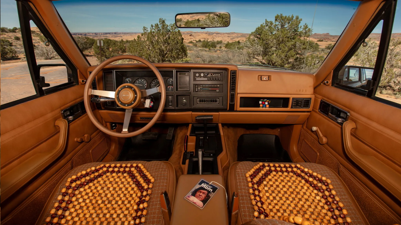 The cabin remains largely untouched, preserving the period dashboard and upholstery. Designers added a few playful details, including wooden bead seat covers, a vintage Apple Macintosh Plus box converted into a cooler, and other era-appropriate accessories that reinforce the vehicle’s 1980s theme.