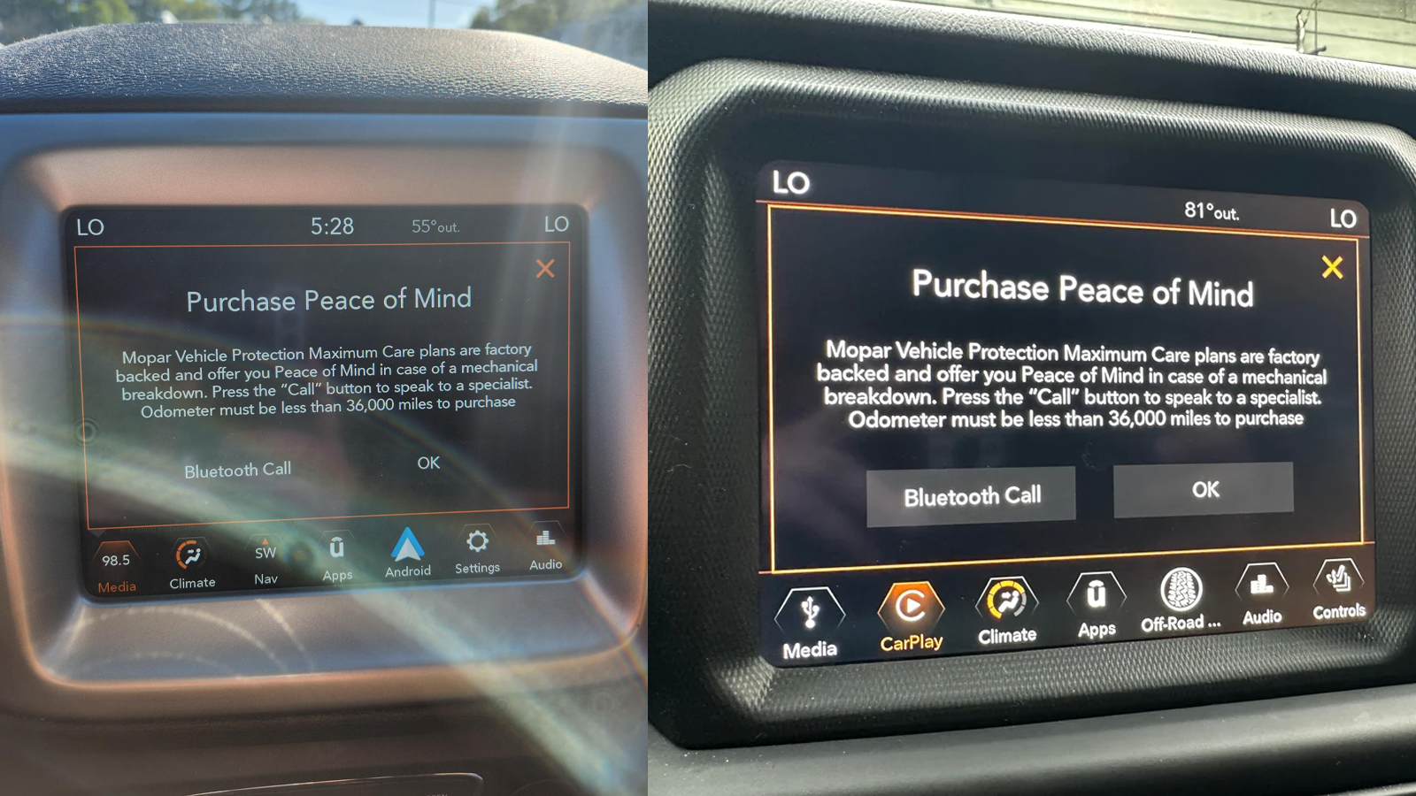 Jeep owners were taken aback when full-screen pop-up ads began appearing on their infotainment screens, pushing extended warranty plans every time the vehicle came to a stop. The ad, promoting the FlexCare Extended Care Premium Plan, was impossible to ignore, offering options to call a representative, press OK, or exit. However, some owners reported that pressing OK did nothing—the ad kept returning, making it a persistent distraction during everyday driving.
