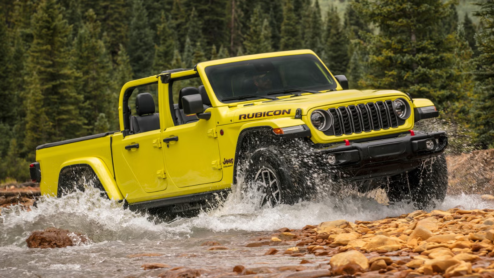 The Gladiator Rubicon essentially applies Wrangler Rubicon hardware to a midsize pickup platform. It uses the same locking Dana 44 axles, disconnecting sway bar, and 4:1 transfer case, making it one of the most trail-ready trucks sold in America. The longer wheelbase improves stability on climbs but slightly reduces breakover angle compared to the Wrangler. However, the Gladiator adds serious practicality with a payload rating exceeding 1,200 pounds and towing capacity up to 7,700 pounds, making it unique among hardcore off-roaders that also function as work trucks.