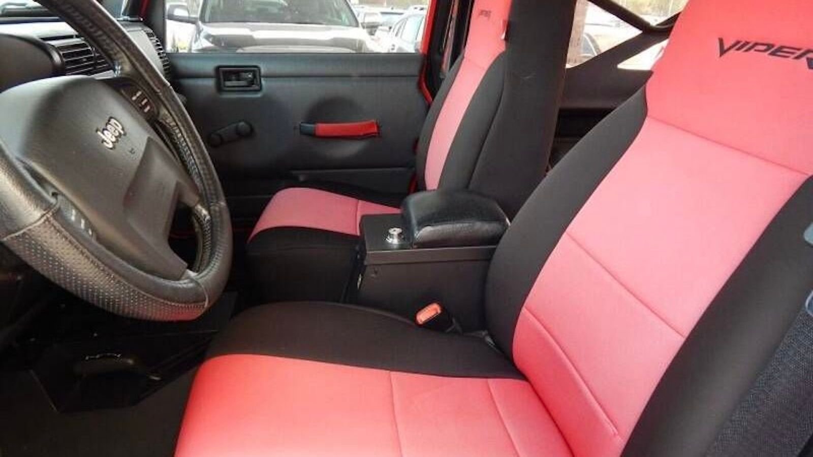 The seller notes that all this work was done professionally by Burnsville Auto Body and Off-Road, so it looks and drives like an OEM vehicle would. The Jeep is estimated to now enjoy around 500 horsepower, which is plenty. The powerplant even bears the signature of Viper chief engineer, Dick Winkles, which is a nice touch.