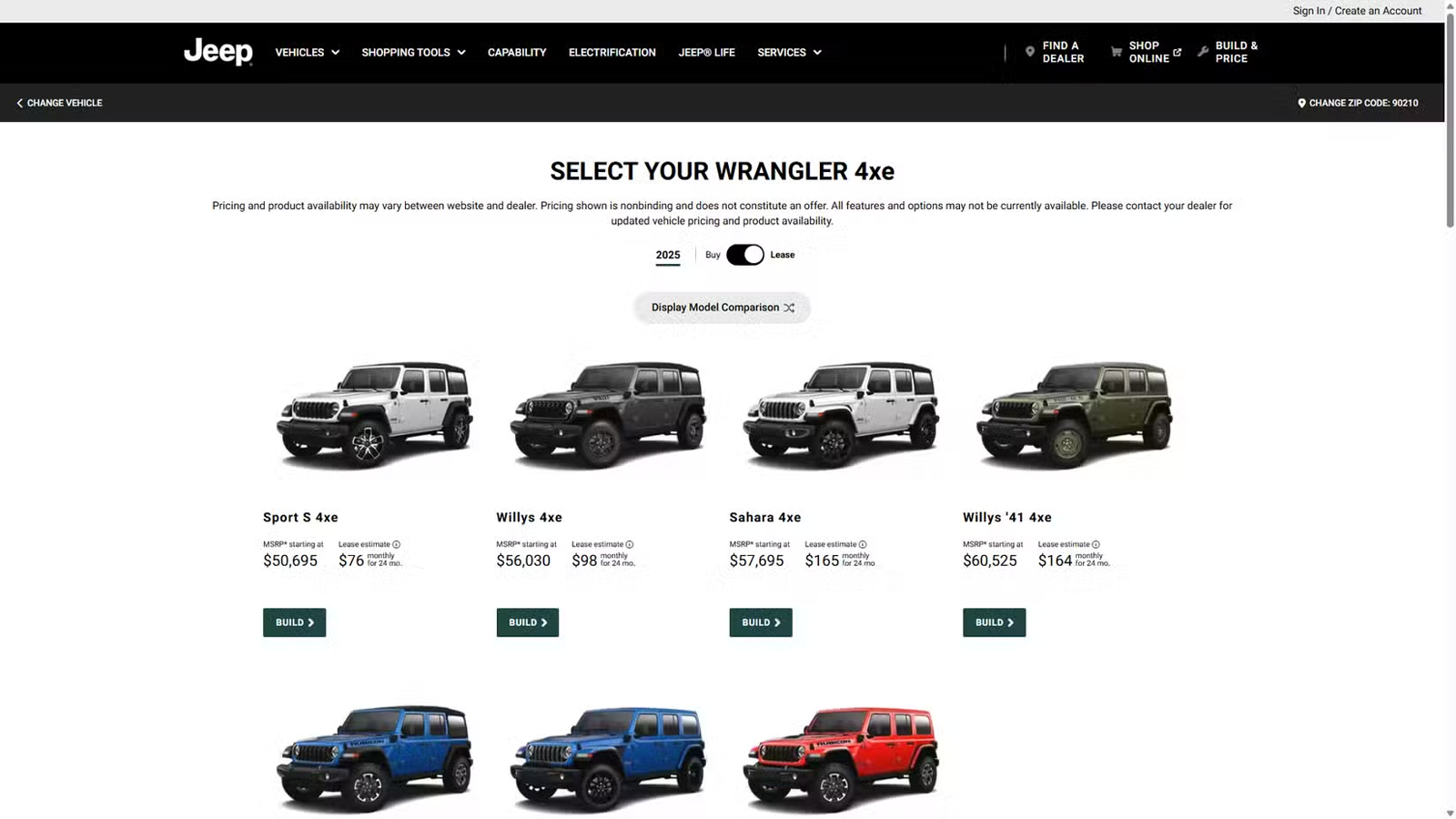 The same incentives also apply to more expensive Wrangler 4xe models. For instance, the Rubicon trim can be leased for $211 per month with the same 10% down payment. Without money down, the monthly cost rises to $487, with higher allowances pushing it into the $589 range. Still, compared with the gasoline-only Wrangler Sport S, $252 per month with 10% down or $451 with zero down, the plug-in hybrid often pencils out cheaper.